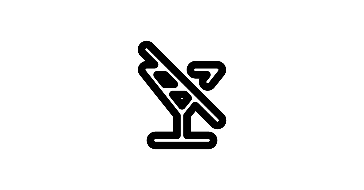 The Glass Martini Alt Slash icon represents a variation of a cocktail glass with a slash or cancellation symbol, often used to indicate a discontinued or unavailable drink.