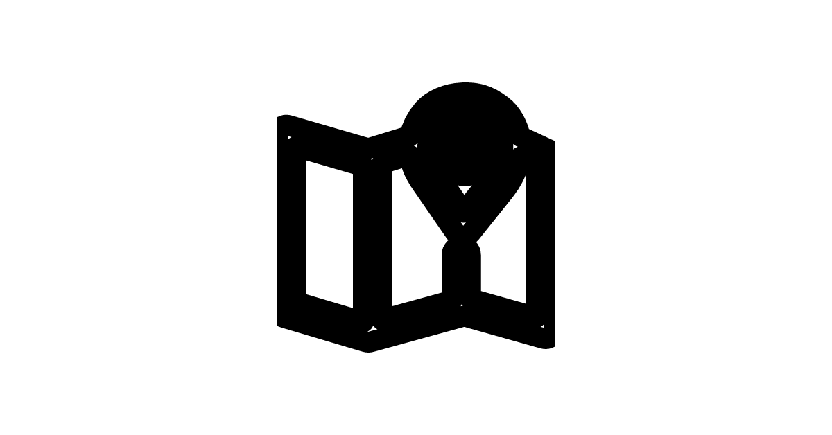 The map icon represents a geographical map or location, used for navigation and direction.
