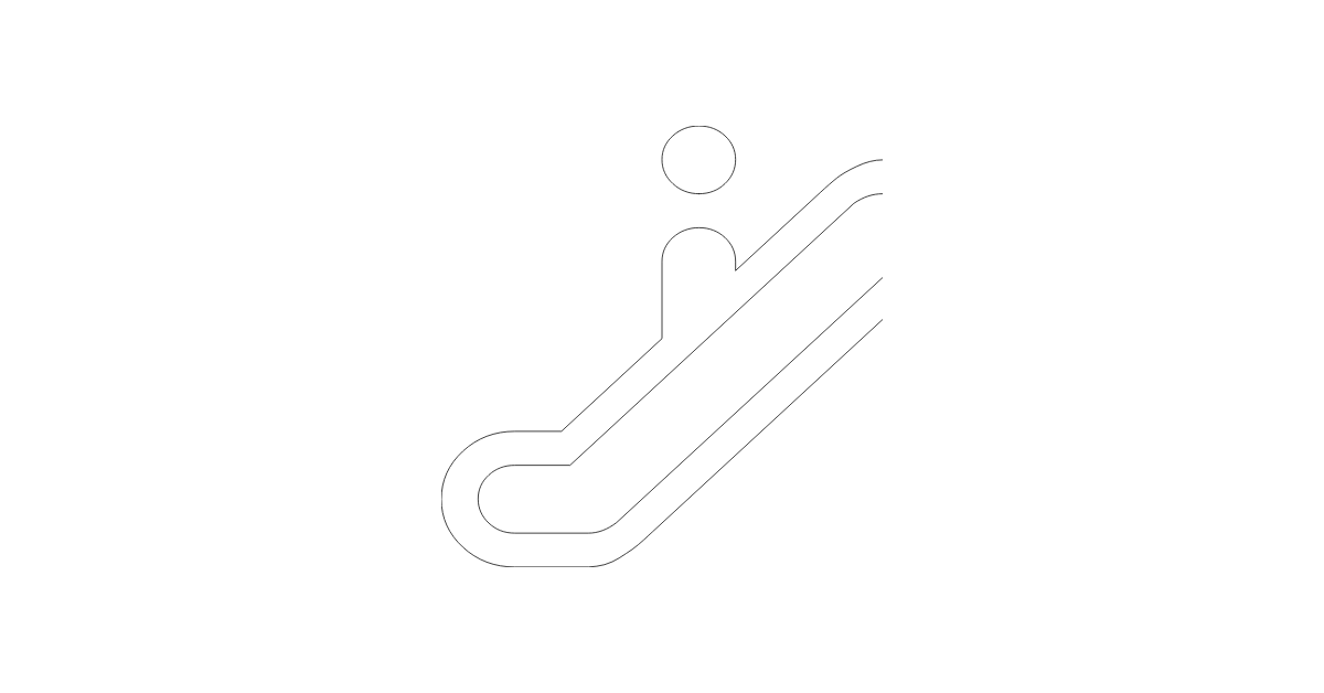 The escalator icon represents a type of transportation or movement, often used in buildings or public spaces.