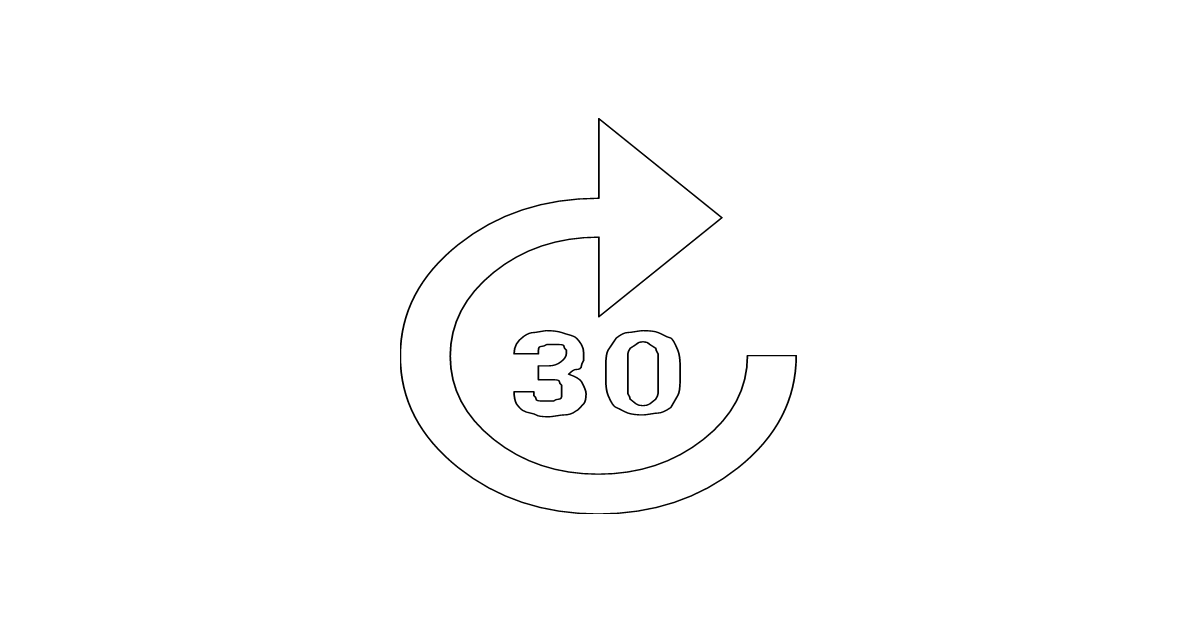 The forward-30 icon represents a navigation element used to indicate movement or progression in a forward direction, often by 30 units or steps.